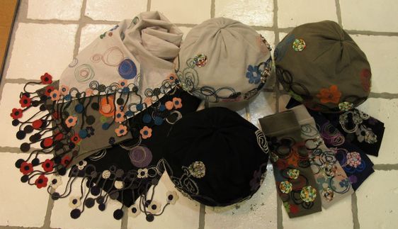 ストール:¥17,280 / 帽子:¥14,040 コサージュ