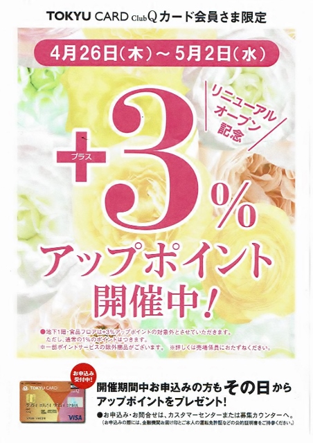 今回はTOKYU CARD ClubQ カード会員様限定でいつも『+2%』のアップポイントが『+3%』になり大変お得になっております。
