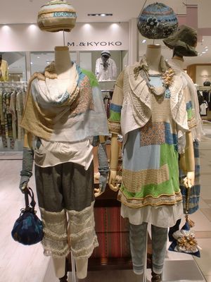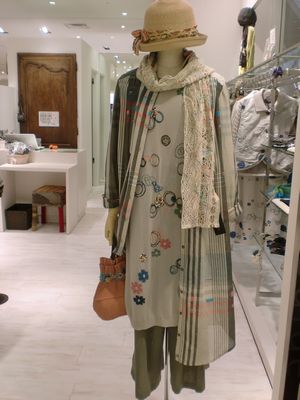 こちらの、ワンピースとショールの柄が「ブロックインターシャ」になります。