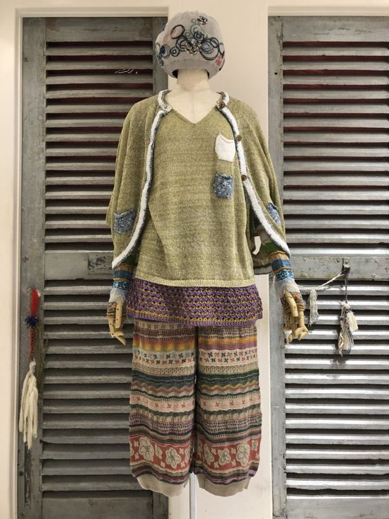上の3スタイル全て ジャガードのニットパンツのコーディネート
