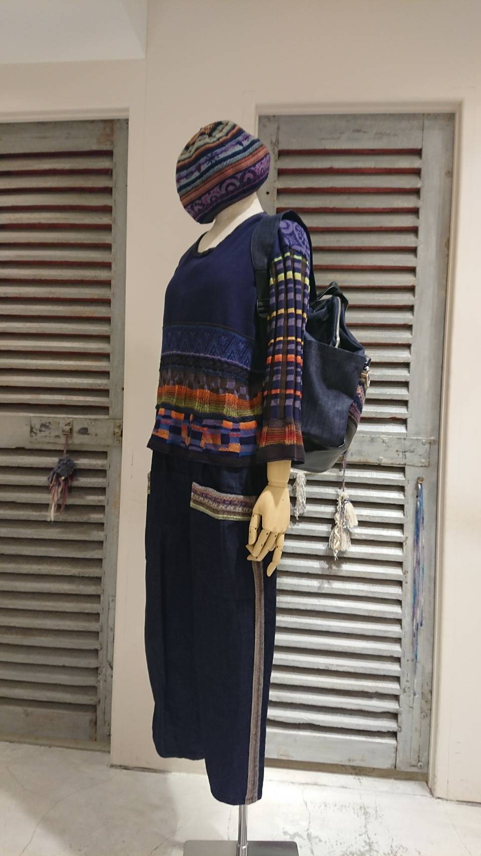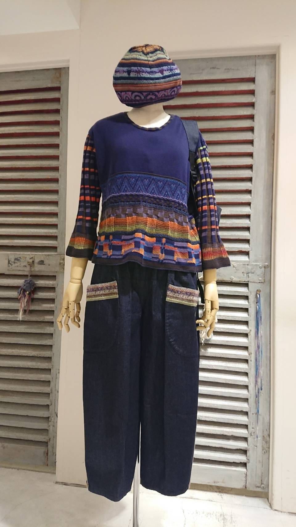 デニムのパンツは 脇のジャガードラインが新鮮ですし