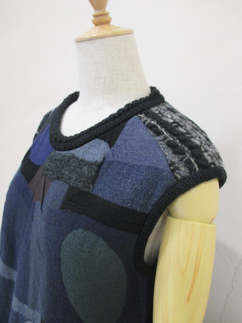 チュニックは肩部分にニットを使用。