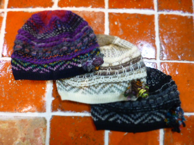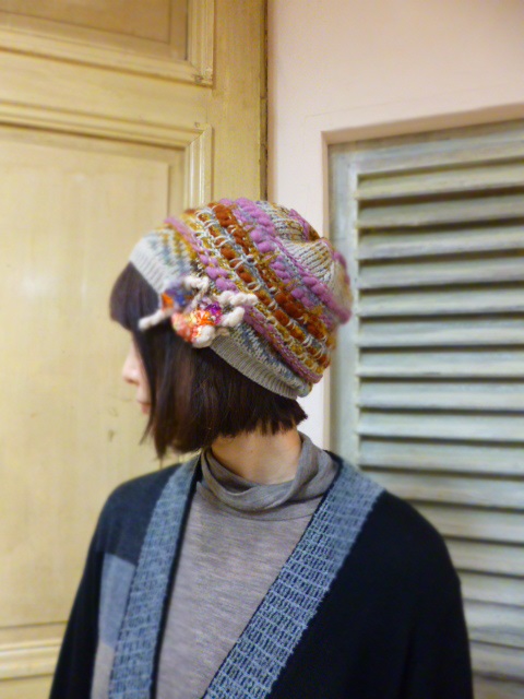 こちらはファンシーヤーンを使ったニット帽。