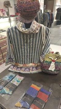 この季節に人気の5分袖のプルオーバーとコートの下にお召しいただけるショール風