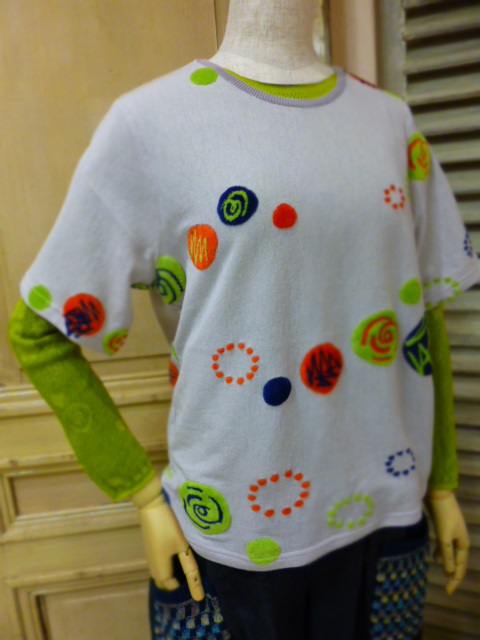 手書きのような水玉模様が可愛い、シンプルなデザインのTシャツ。