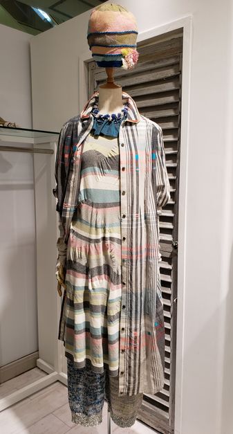 シャツワンピースは淡い色の組み合わせが新鮮です♪