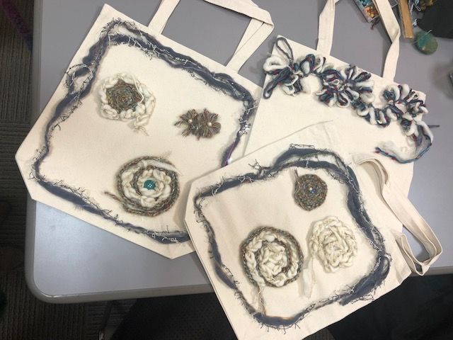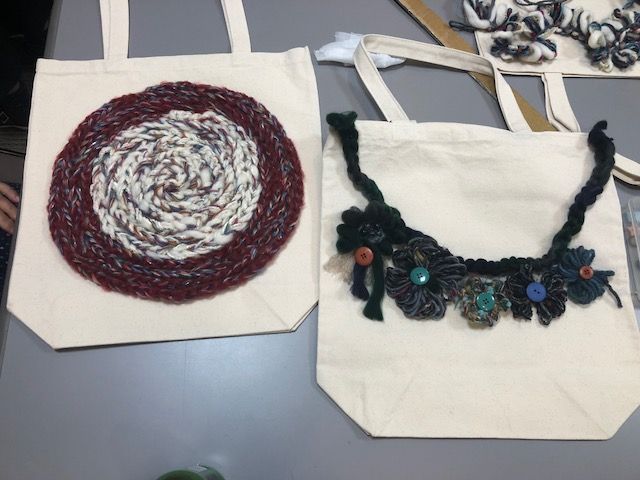 佐藤繊維オリジナルトートバックにマサキヤーンで素敵に飾り付けをして頂いたり、
