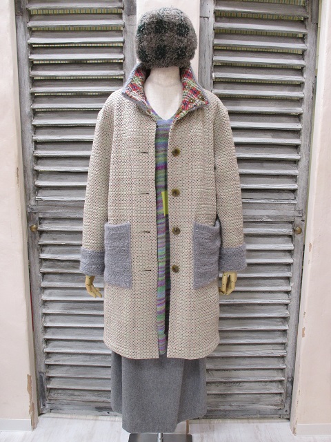 M.&KYOKOの代表ともいえるニットコートや布帛生地のウールジャガードなど