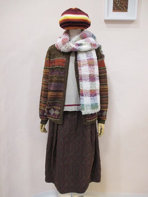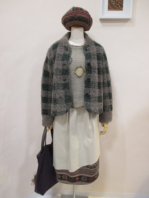 他にもワンピース(¥42,000+税)やプルオーバー(¥29,000+税)、中綿キルティングを使用したコート(¥69,000)や小物も色々ご用意しています。