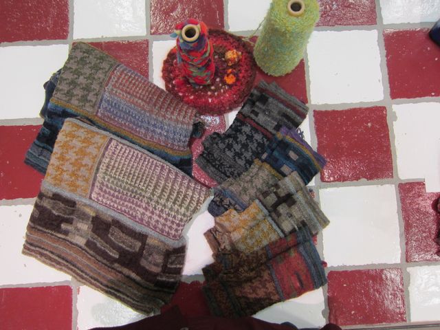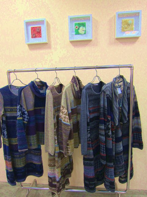 パッチワーク風に様々な柄をインターシャで編み込んだテキスタイル