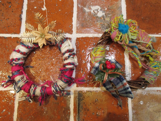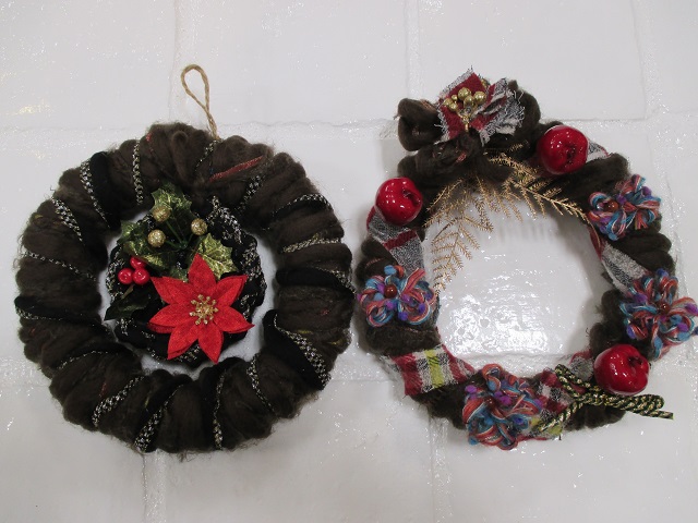 みなさん思い思いの糸を使い、それぞれ素敵なリースが出来上がりました。