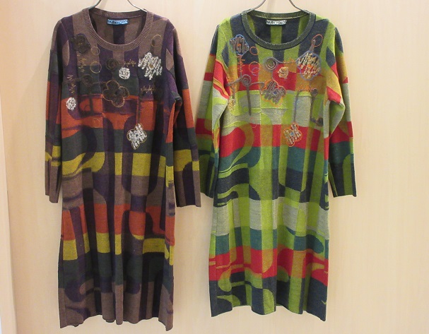 鮮やかな色の、幾何学模様のニットセットアップはいかがですか?