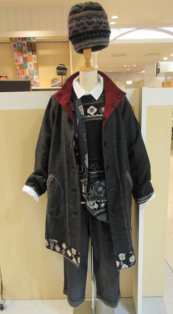 帽子¥11,000+税 ショールベスト¥19,000+税 コート¥75,000+税
