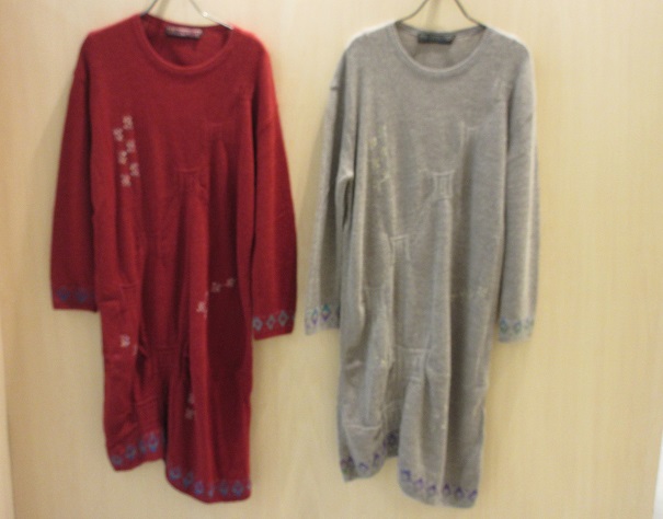 ワンピースもあります。裾をランダムなラインに仕上げました。
