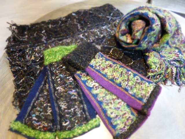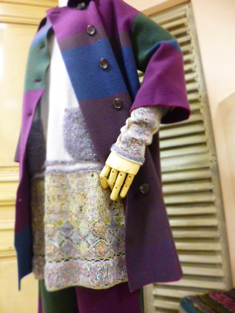 印象的なレースは通常ニットに使用しているファンシーヤーンが編み込まれ