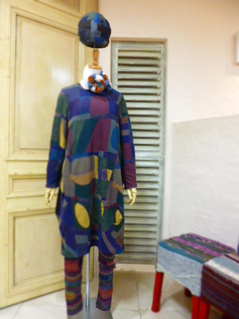 こちらの幾何学模様のジャージは柔らかい肌触りが特徴で、起毛感がなくさらりとしているので春先まで着ることができます。
