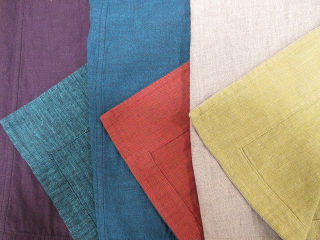 リバーシブルなので、やわらかなコットンの面とざっくりとした麻混を使用した