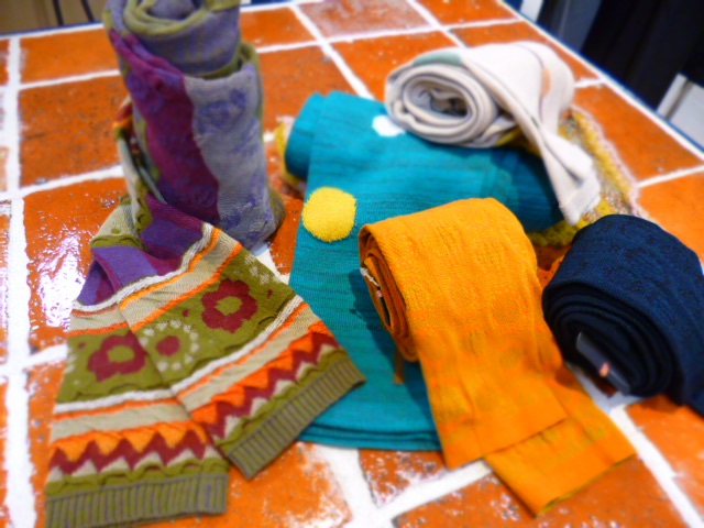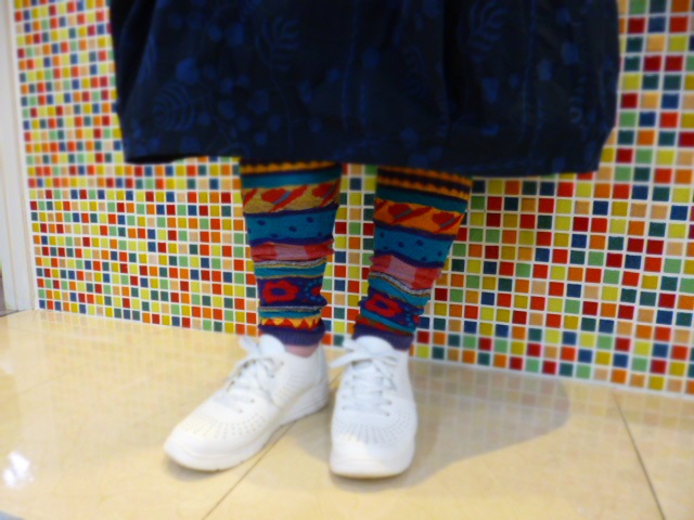 カラフルなレギンスは、ぱっと足元が華やぎます。