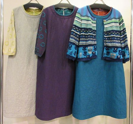 同色のニットとドッキングしたリミックス使いもポイントです。