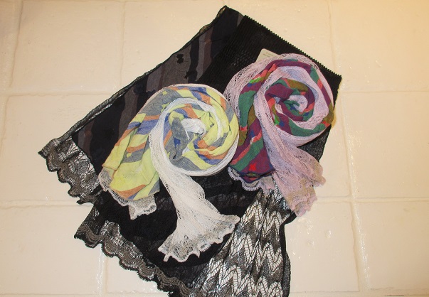 レースとコットンジャージーのマフラーです。
