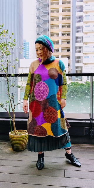 ふんわり柔らかな風合いが人気のタートルチュニックに、リバーシブルのプリーツスカートを合わせました。