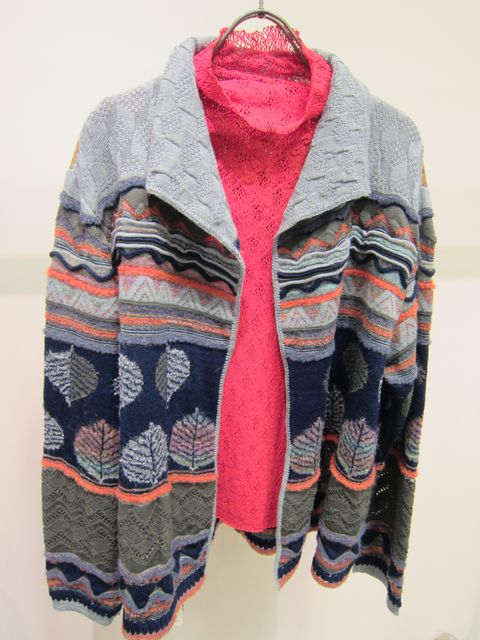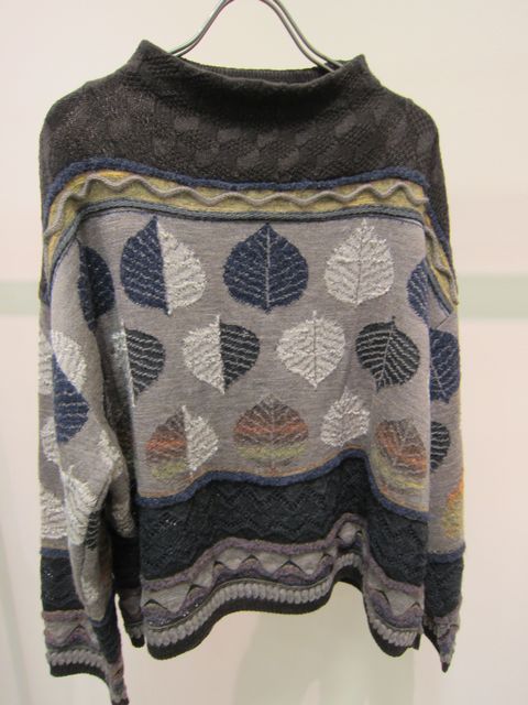 モヘヤやループヤーンで表現された葉っぱ柄がとても可愛いですよ。