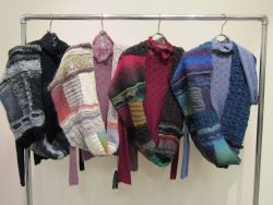 ふくらみのあるワタ状のグラデーション糸に極太のモールヤーンやファンシーヤーンなどを