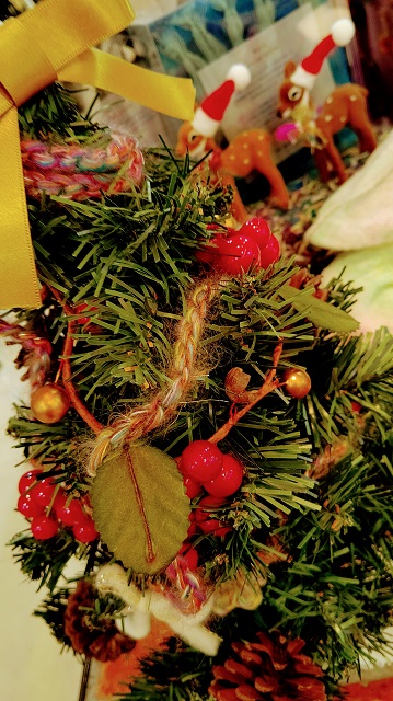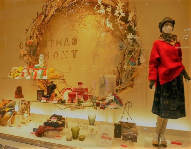 大きなリースとM.&KYOKOのお洋服達がお出迎えしています♡