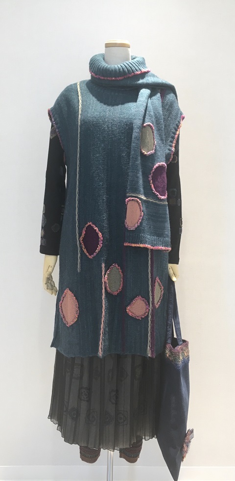 極太のモールヤーンやファンシーヤーンを贅沢に使ったカーディガンと組み合わせると