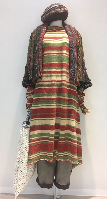 今年は、アルパカ混の糸にドットと同じ配色のストライプ柄をアクセントにしました。