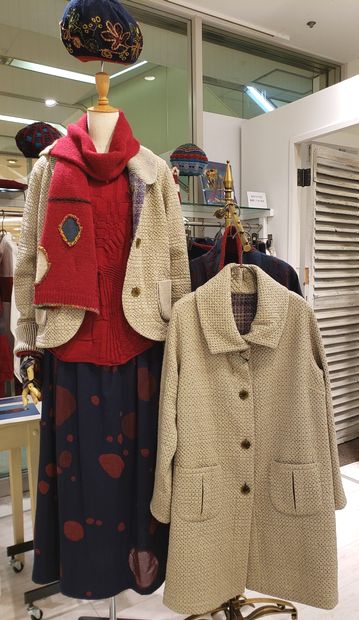 コートの上に刺繍の衿を付けると華やかになりますね♬