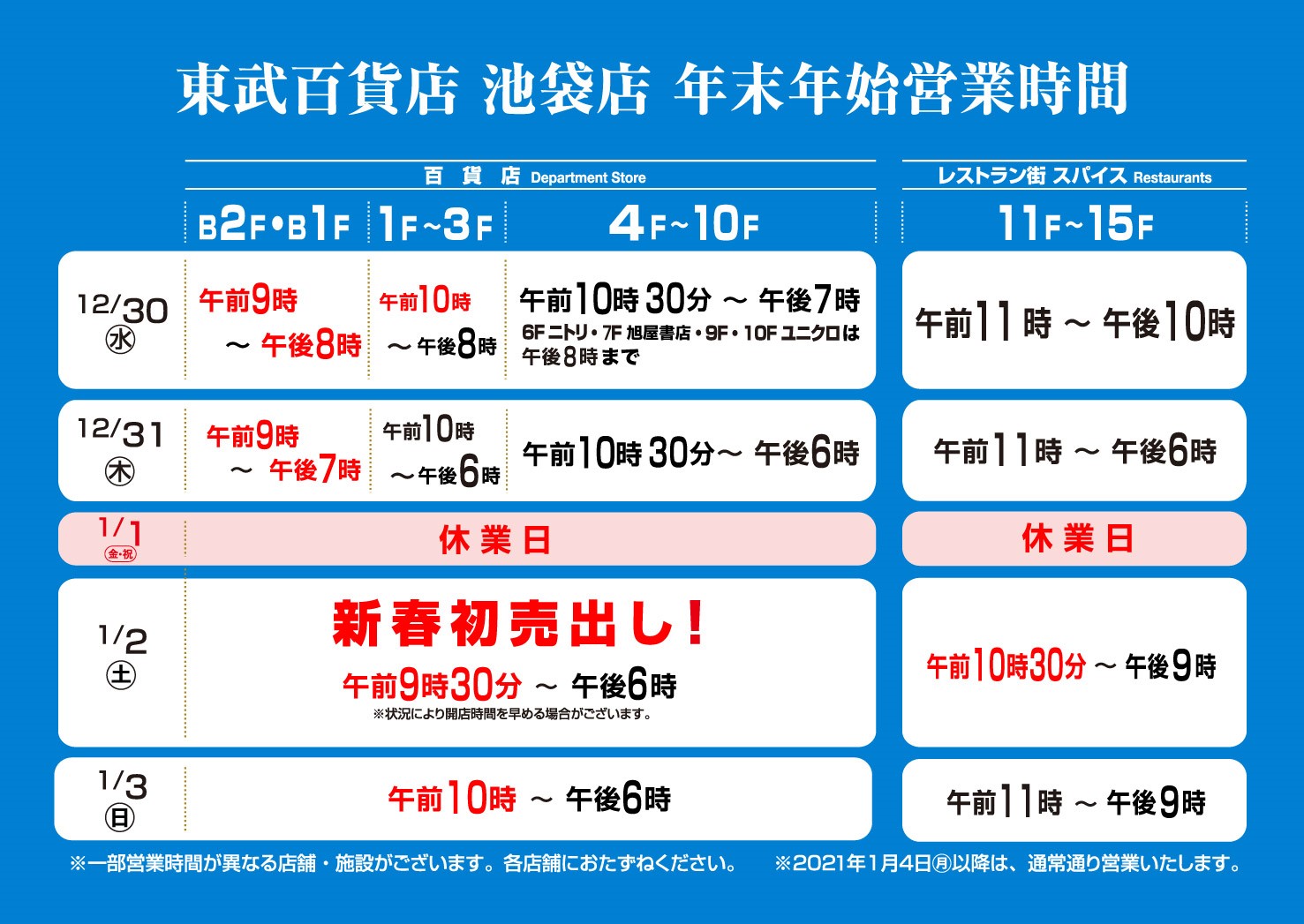 2020年12月31日 10:00|東武百貨店 池袋東武店