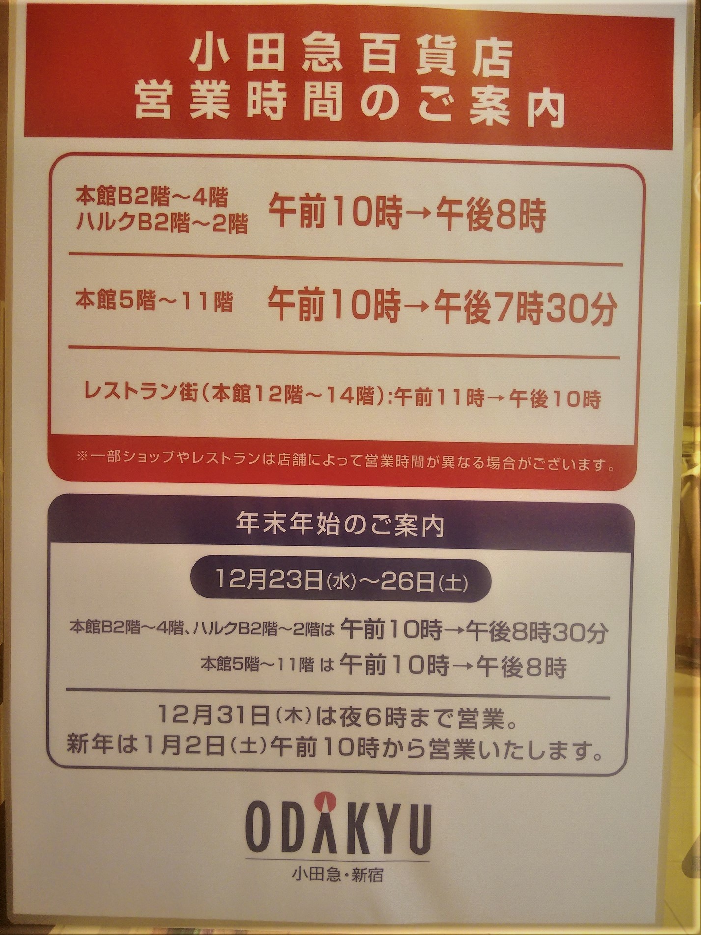 2020年12月30日 10:00|小田急百貨店 新宿店