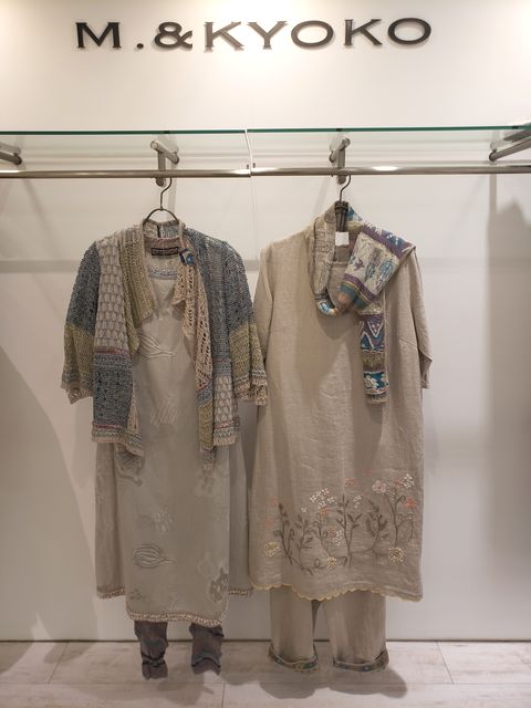 右側のリネンキャンバスワンピースは、可愛い蝶々の刺繡も入っております♪