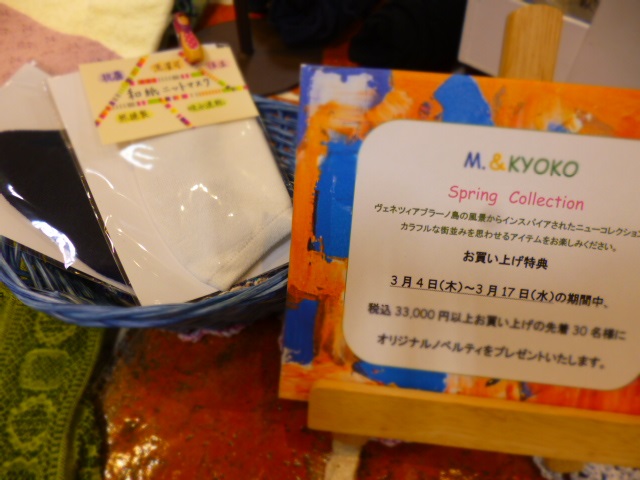 3階エスカレーター前では、M.&KYOKOのお洋服がお出迎えしております。