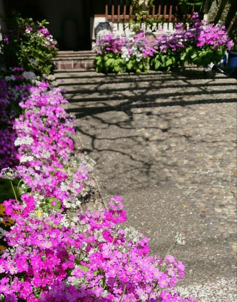 今は葉のない藤棚のパーゴラと藤の枝の影が これからの季節を物語ります。
