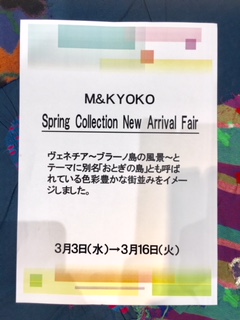 只今、小田急新宿M.&KYOKOではスプリングコレクションを開催しております。