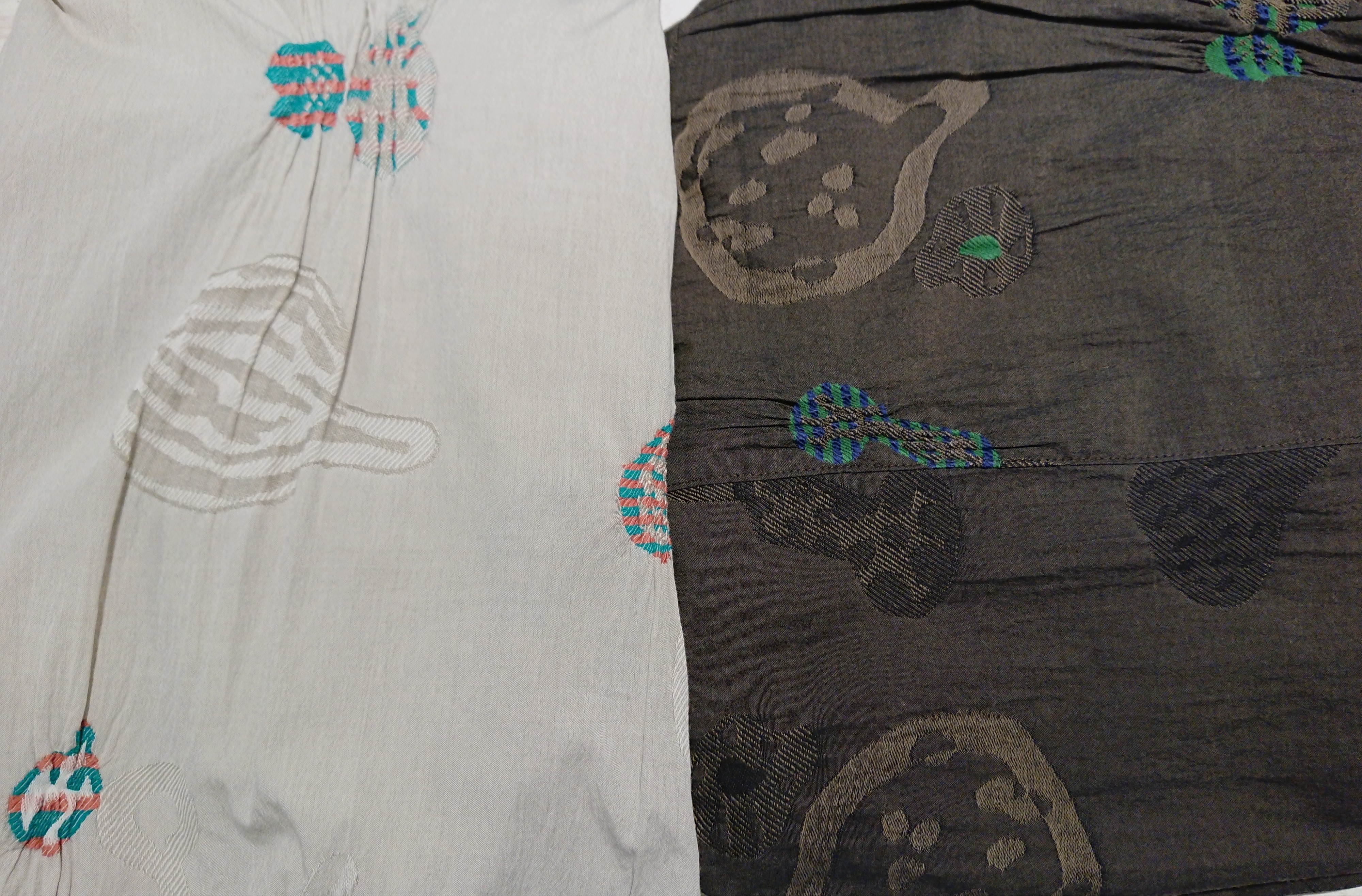こちらの生地で、パンツ・プルオーバー・スカートはシャーリング加工されています。