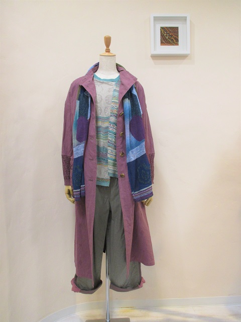 製品染めの深みのあるピンクの色合いがポイントの春らしいコーディネート。