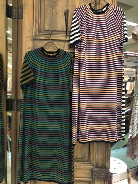 中央:前後違うボーダーが楽しめる極細コットシームレスシリーズのワンピース