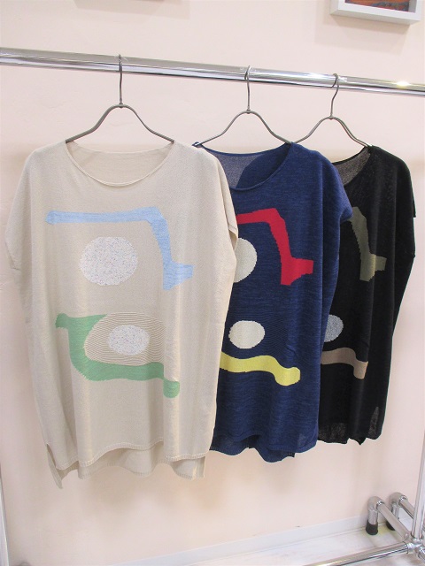 和紙×ポリエステル、強撚コットンのベースに抽象柄を描いた『抽象柄インターシャ』のシリーズをご紹介します。