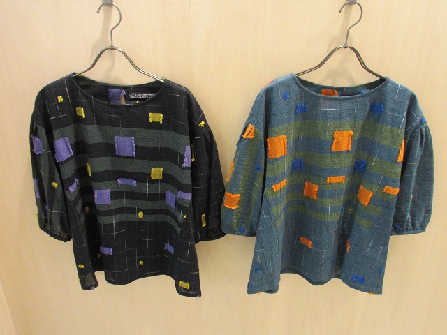 ロングブラウスは大きなスリット入りで羽織に最適です。