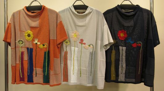テキスタイルです。インターシャ柄とファンシーヤーンを使用