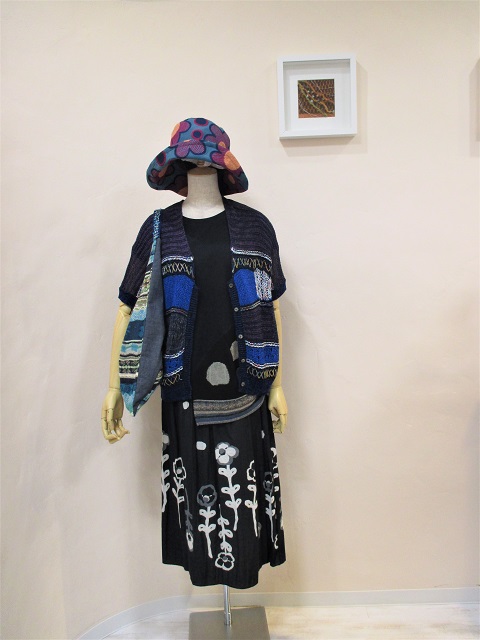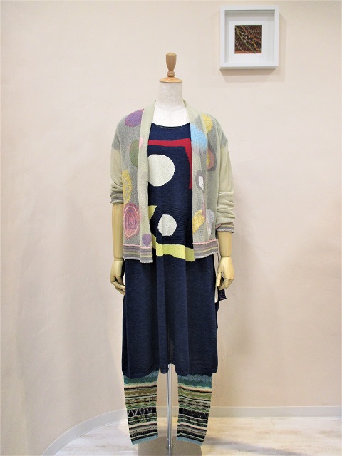 ニットワンピースと通気の良いカーディガン、カラフルに気分も明るく