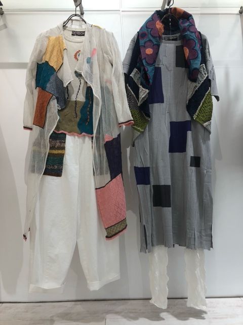 左→カラフルな糸が織り込まれている綿のベース生地×立体感ある刺繍で、さりげないようで存在感抜群。袖には和紙素材を使っています。