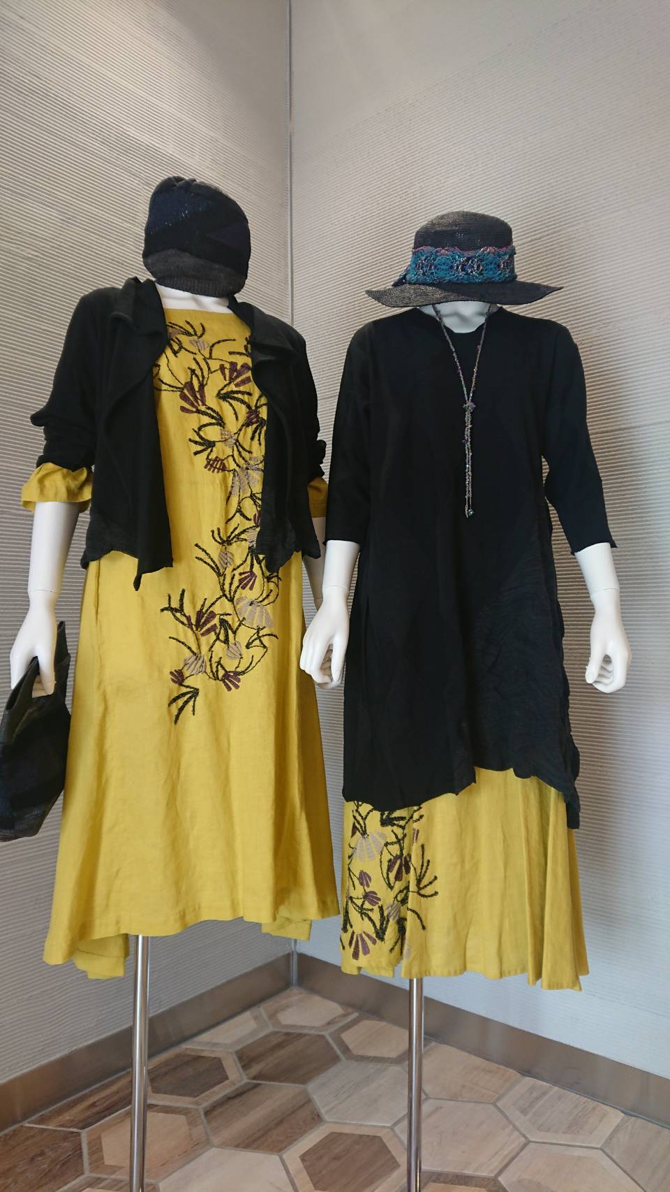 左は FUGA FUGA のワンピーススカートと一緒に黒で