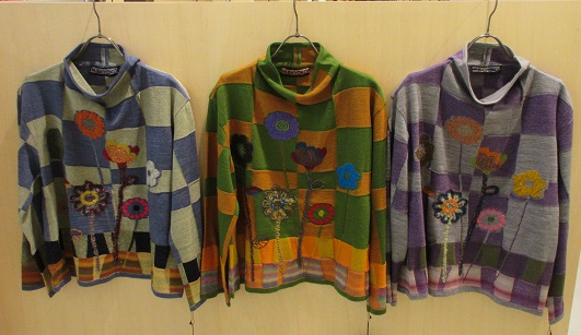 ふくらみのあるブークレー糸やモヘアでカラフルなお花を描いた