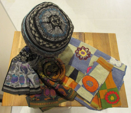 パッチワーク風のニットも可愛いです。