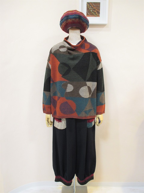 秋物にも似た雰囲気の幾何学柄のインターシャのシリーズがありましたが、今回は更にウールの比率が増え暖かくなりました。