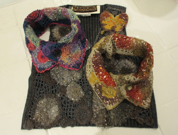 カラフルカラーのベスト、マフラーです。